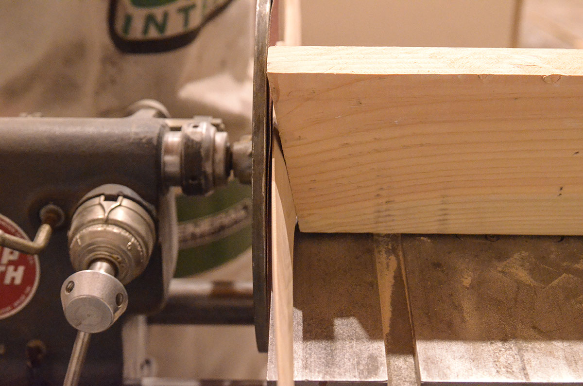 I used an old 2x4 with an angle cut to line up the bevels evenly on both sides of the blade